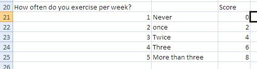 You then need to add the scores to your spreadsheet. The image below shows what each questions resoponces should look like -