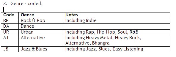Consider the table above (taken from the example field file). This is the filed genre which is coded. It will only ever have two letters in it. RP, DA, UR, AT and JB. As such we will only need to set the field size to be 2.