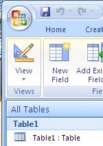 You will be greeted with the datasheet view of the database. This allows you to add data to your database. Before we can do this we must create the structure. To do this you need to click on design view. Design view (the icon on the left) allows you to add, remove and edit fields. You must add fields as specified by the field file you downloaded. You must use the same names and put them in the exact same order. Click here to see a video on how to add fields. |