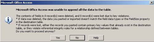 If you get problems you may get a screen which looks like the one above. You can find out what went wrong by looking at the error table which will get produced when you click on yes.